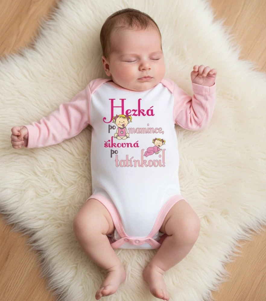 - Body s potiskem "Hezká po mamince,šikovná po tatínkovi!"