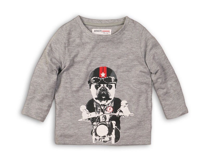 Tričko s dlouhým rukávem v šedé barvě s hafanem na motorce.