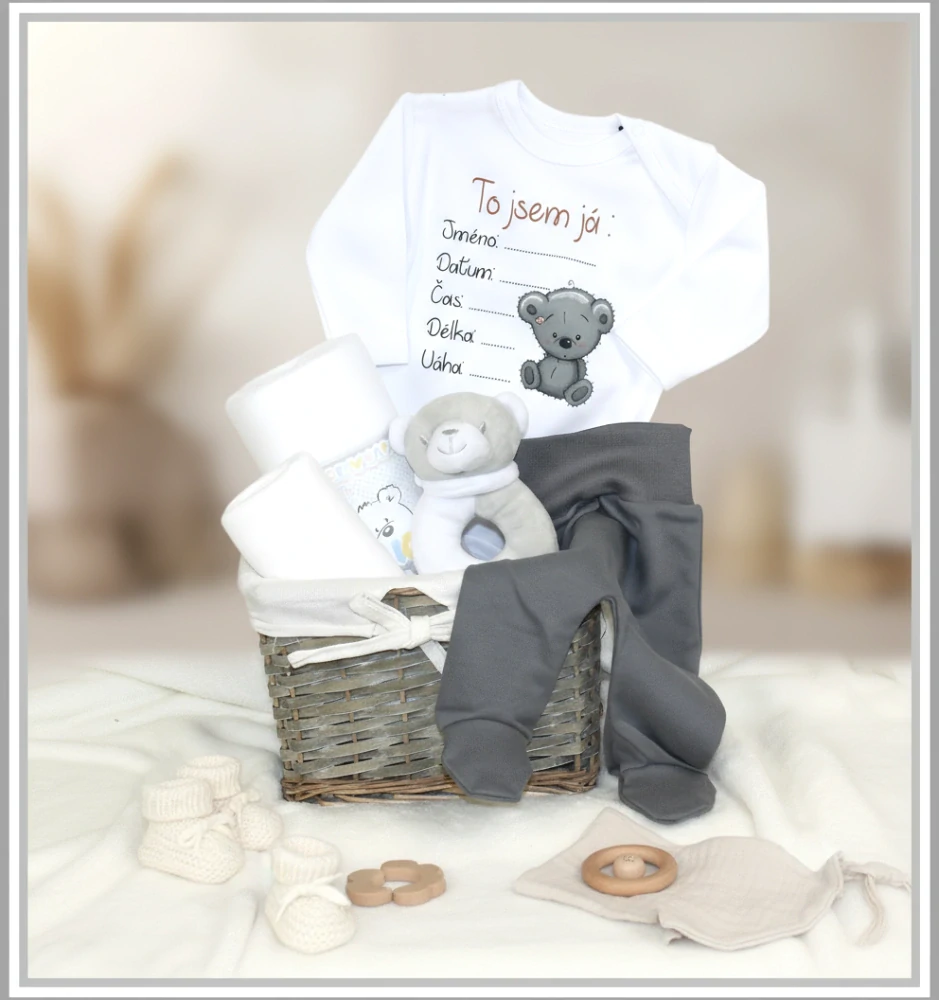 Dárkový košík Šedý medvídek