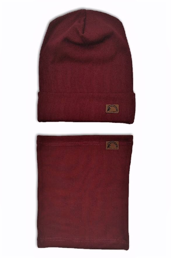 - Dětská bavlněná čepice s nákrčníkem vínová