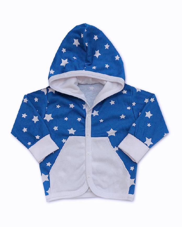 hvězdičková mikina vyrobena z kvalitní bavlny , zapínání mikinky uprostřed na baby druky, rukávky ukončené pružným nápletem,kapsičky, kapucka z dvojité bavlny. Krásně doplňuje kolekci Hvězda.