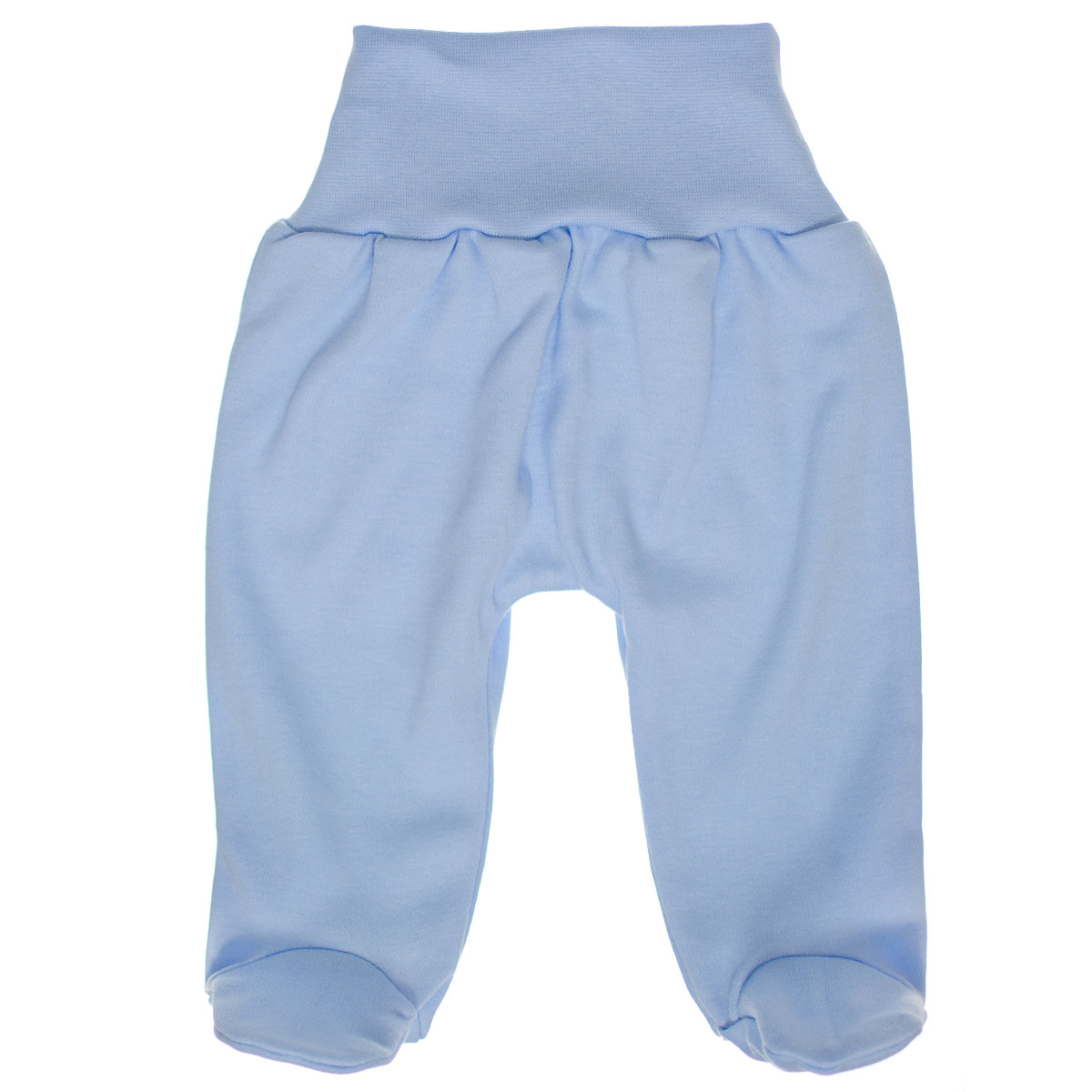 Bavlněné polodupačky pro miminka v modré barvě s pohodlným širokým pružným pasem.