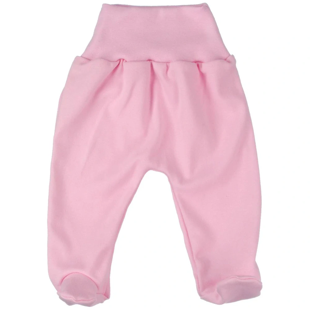 Bavlněné polodupačky pro miminka v růžové barvě s pohodlným širokým pružným pasem.