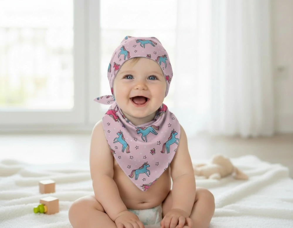 - Dětský bavlněný šátek Jednorožec růžový