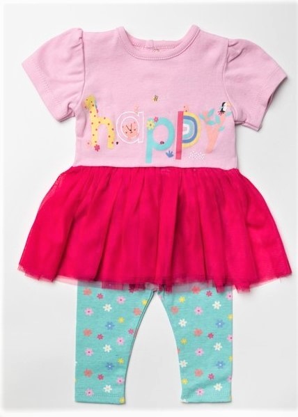 tuniku s krátkým rukávkem a tylovou sukýnkou doplňují květinkové legínky.