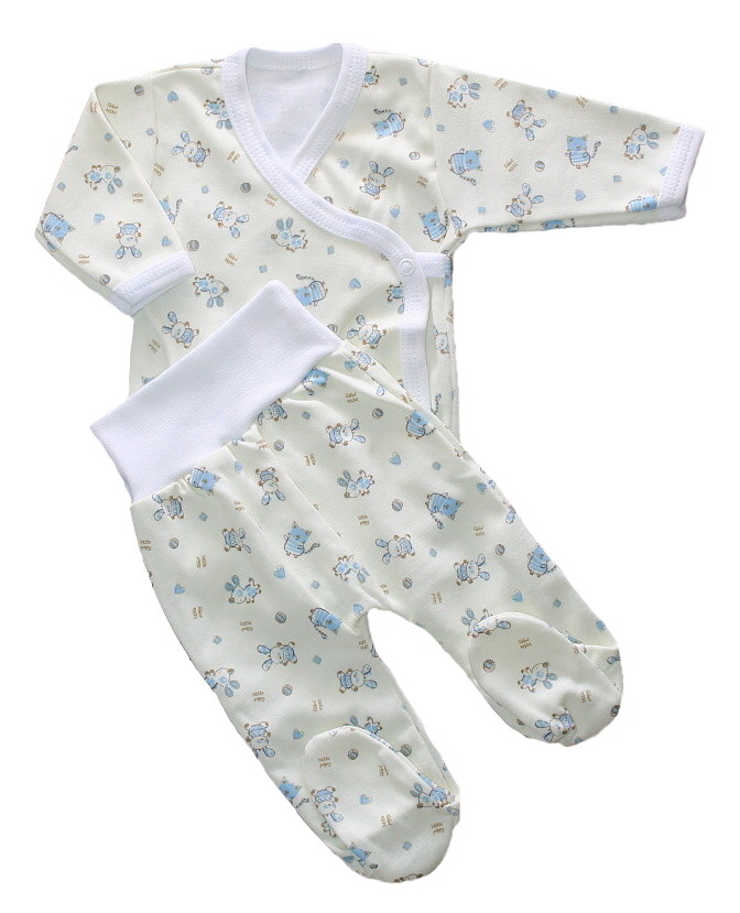 Soupravička body + polodupačky pro miminko Modrá zvířátka