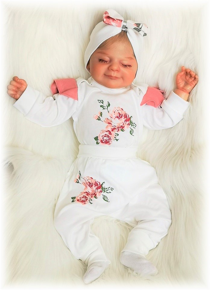 soupravička obsahuje body s kanýrkem a obrázkem růžičky,zapínání na obou ramíncích velmi usnadní oblékání přes hlavičku, tepláčky s pohodlným širokým pružným pasem s obrázkem růžičky, smetanová barva v kombinaci s pudrově růžovou in souprava pro malé holčičky.