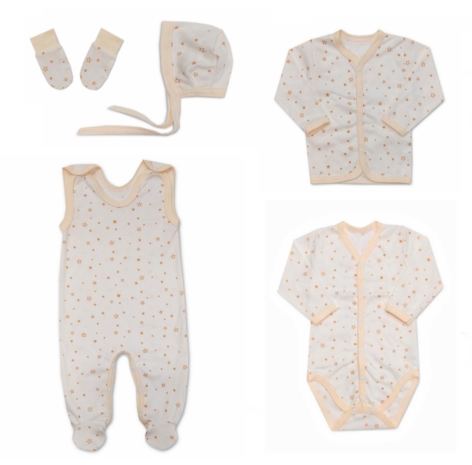 soupravička z kvalitní bavlny ideální pro miminka v krémové barvě s potiskem hvězdiček.