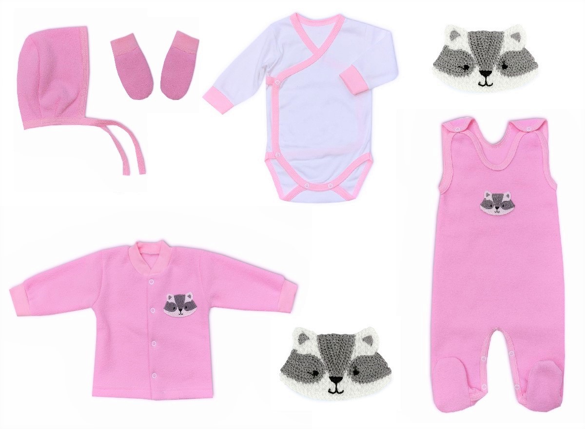 Teplá kojenecká 5 dílná soupravička Mýval růžová