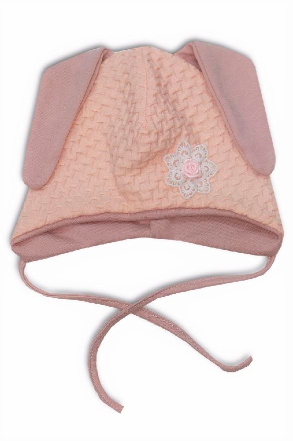 - Kojenecká dvojitá bavlněná čepička Zajíček růžová