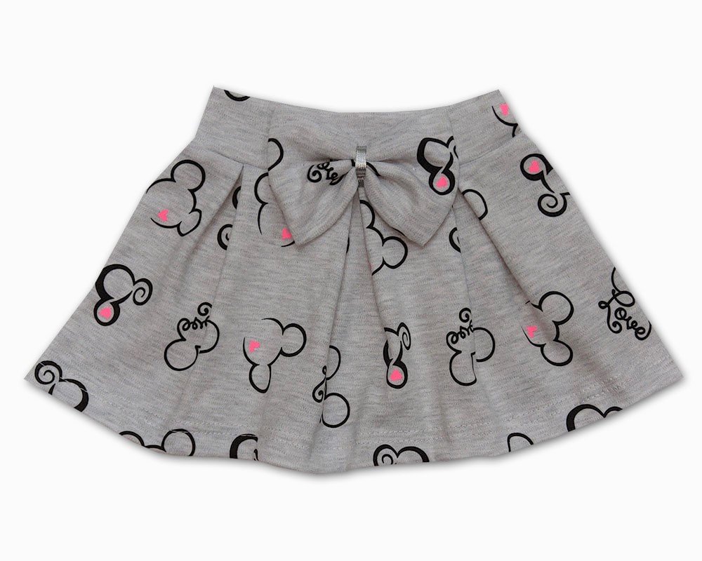 nařasená sukýnka pro holčičky zdobená mašličkou, potisk hlaviček myšek s nápisem LOVE.