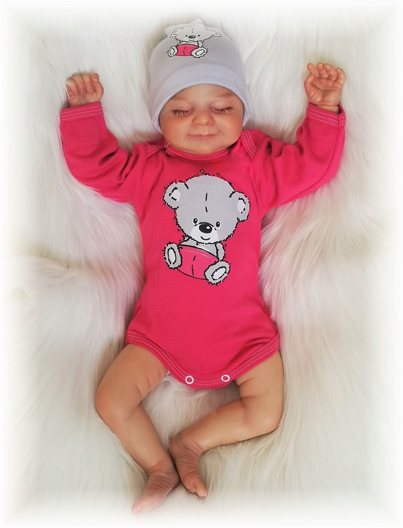 amarantové bodynko s roztomilým obrázkem medvídka , pro pohodlné oblékání přes hlavičku zapínání na obou ramínkách na baby druky.