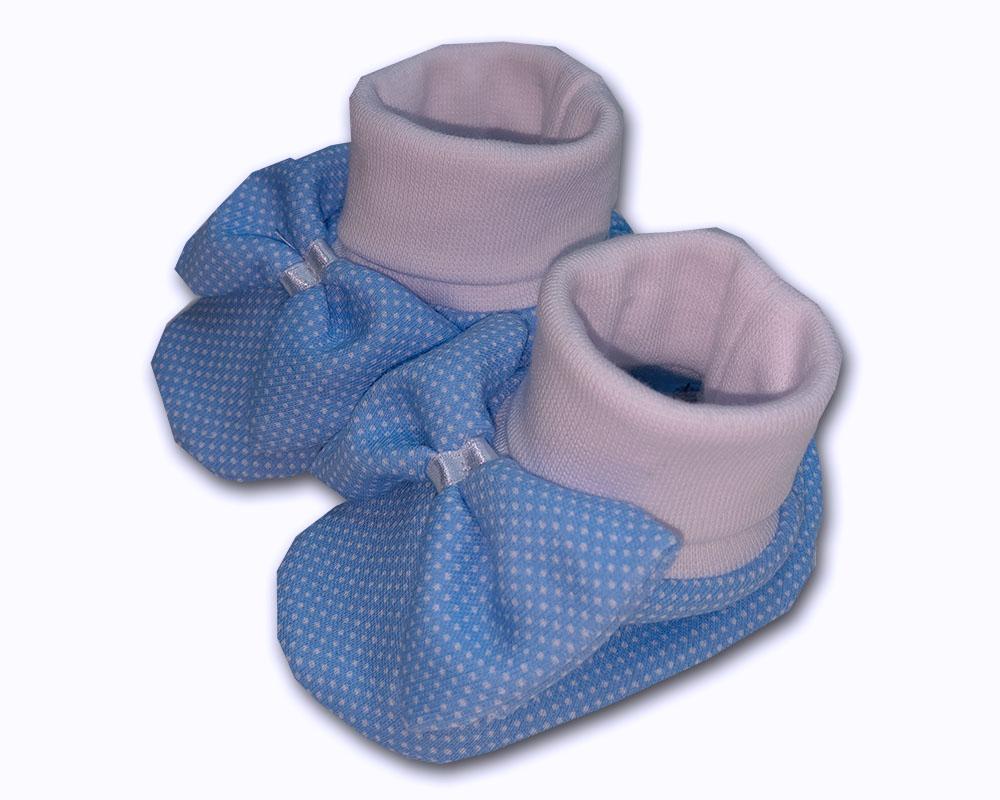Kojenecké bavlněné capáčky s mašličkou Dots modrá