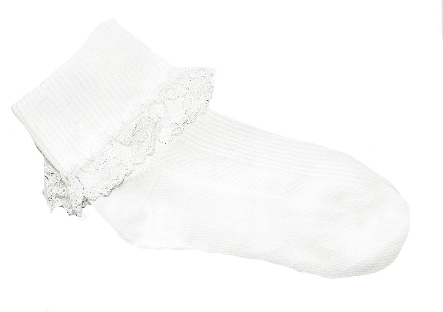 Bavlněné bílé ponožky pro miminka s ohrnutím zdobené kraječkou