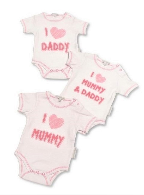Kojenecké body 3 kusy I LOVE MUM & DAD růžové