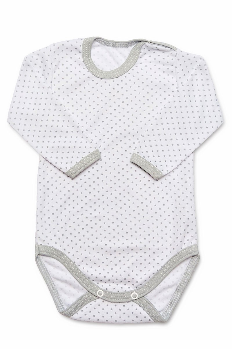 bodynko pro miminko na bílém podkladu šedé hvězdičky, šedé lemování.