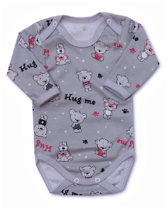 bodynko s krásnými obrázky medvídků a nápisem HUG ME , pro pohodlné oblékání přes hlavičku zapínání na obou ramínkách na baby druky.