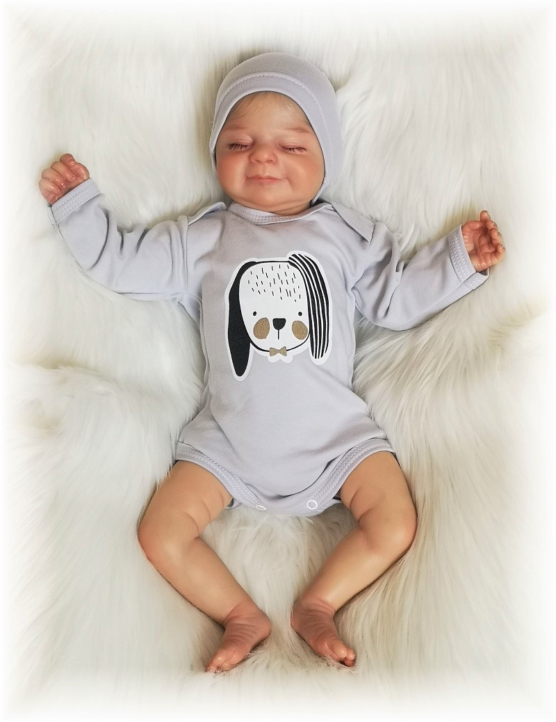 šedé bodynko s krásným velkým obrázkem pejska , pro pohodlné oblékání přes hlavičku zapínání na obou ramínkách na baby druky.