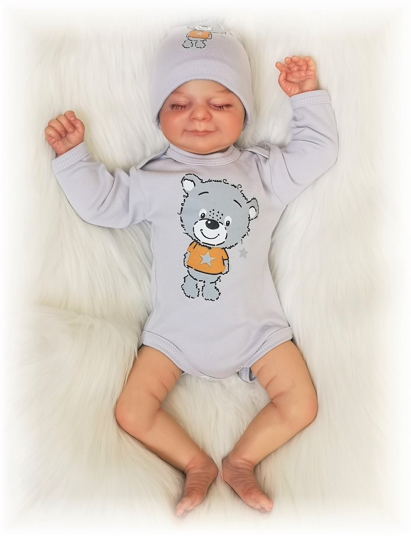 šedé bodynko s krásným velkým obrázkem medvídka , pro pohodlné oblékání přes hlavičku zapínání na obou ramínkách na baby druky.