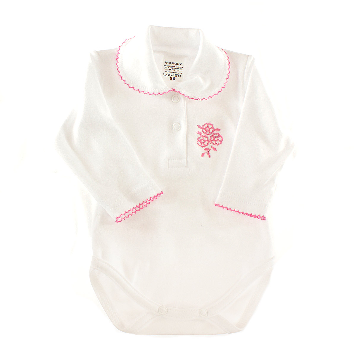 Kojenecké body dl. rukáv s límečkem a květinkou 62