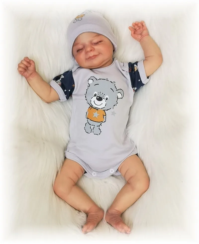 šedé bodynko s krásným velkým obrázkem medvídka , pro pohodlné oblékání přes hlavičku zapínání na obou ramínkách na baby druky.