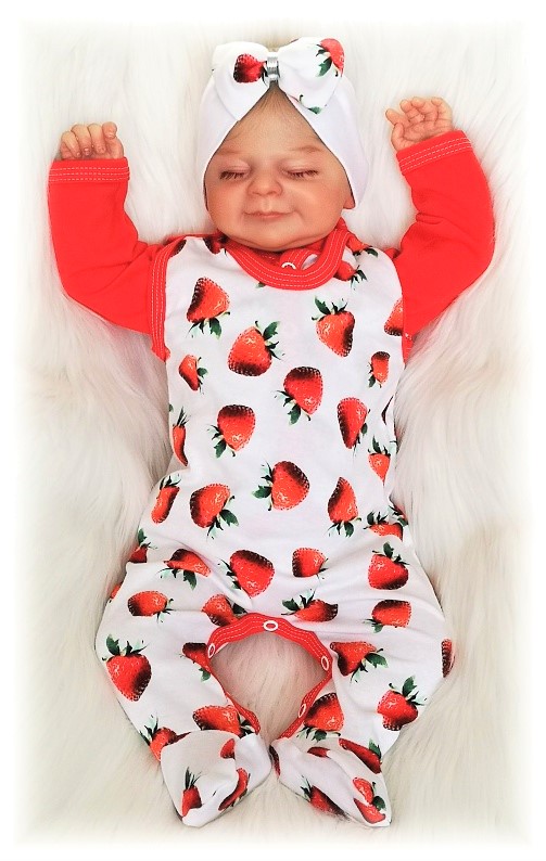 dupačky jsou vyrobené z kvalitní jemné bavlny s obrázky jahůdek, červené lemování , zapínání na ramínkách a mezi nožičkami na baby druky - usnadňuje pohodlné oblékání i přebalování novorozených miminek.