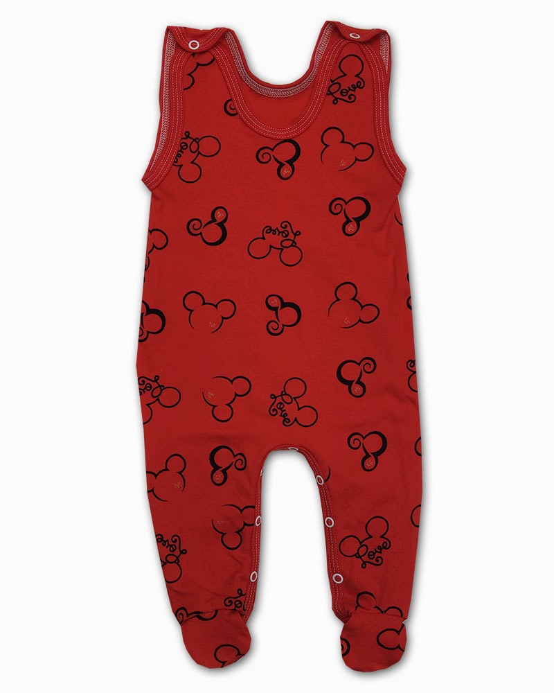 dupačky jsou vyrobeny z příjemné jemné bavlny, zapínání na ramínkách a mezi nožičkami na baby druky - usnadňuje pohodlné oblékání i přebalování miminek. Celé dupačky zdobí obrázky hlaviček myšky s nápisem LOVE.