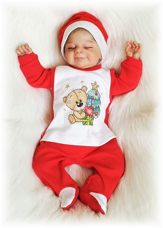 bavlněné dupačky s roztomilým vánočním medvídkem, zapínání na ramínkách i mezi nožičkami na baby druky.
