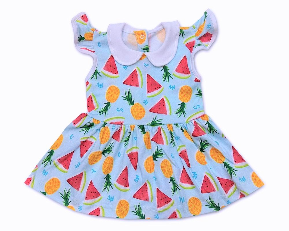 Šaty s letním potiskem z úžasně jemné bavlny, roztomilé volánkové rukávky a límeček, rozzáří každou malou holčičku. Zapínání na zadní straně usnadní oblékání miminka. Letní šatičky jsou ideálním oblečením pro horké letní dny. Materiál: 100% bavlna.
