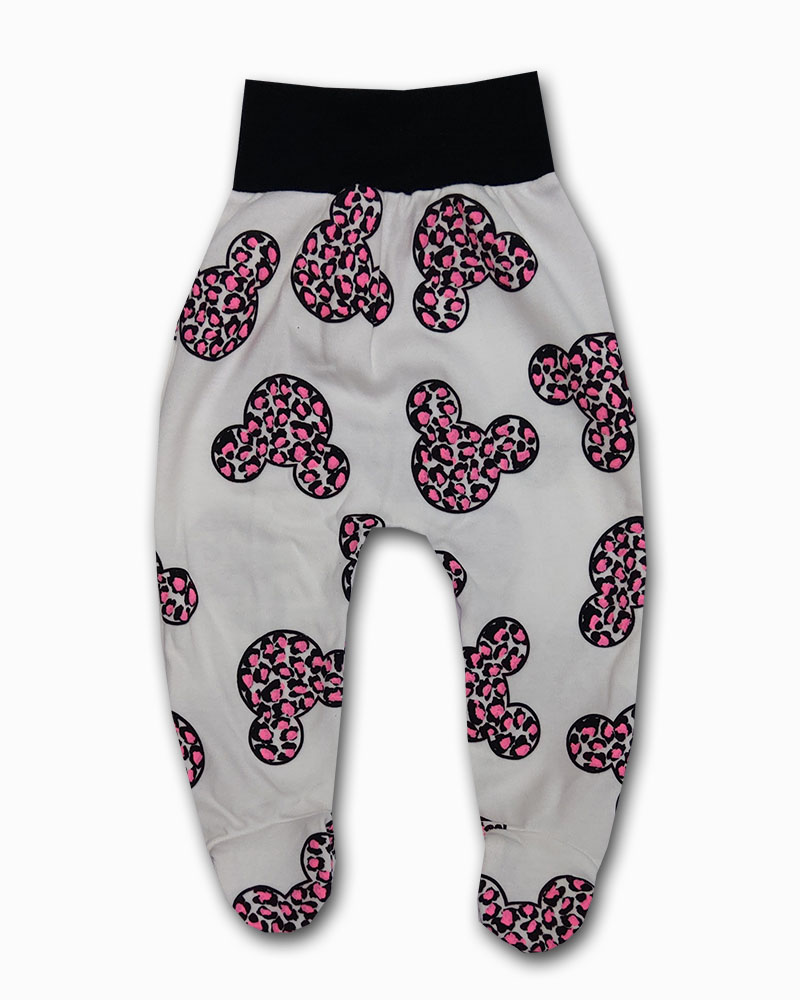 bavlněné polodupačky s obrázky hlaviček myšek, široký pohodlný pružný pas v černé barvě.