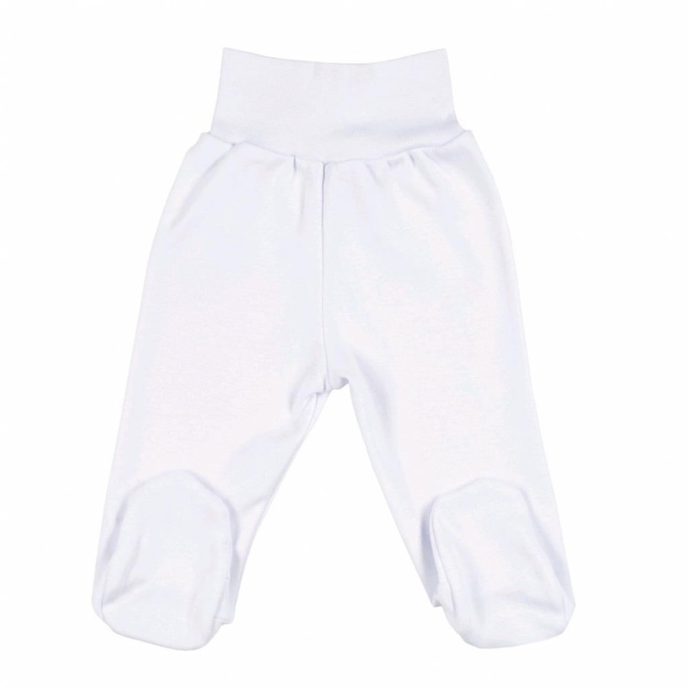 Bavlněné polodupačky pro miminka v bílé barvě s pohodlným širokým pružným pasem.