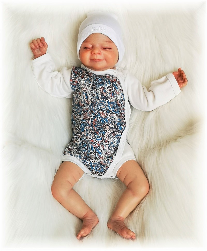 bodynko je vyrobené z jemné příjemné jemné bavlny, zapínání na boku na baby druky - usnadňuje pohodlné oblékání i přebalování novorozených miminek - není nutné přetahovat přes hlavičku. Zajímavý vitrážový barevný vzor v kombinaci se smetanovou barvou.