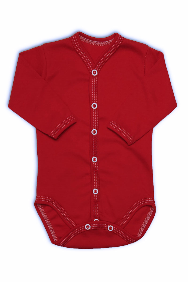 Bavlněné body propínací uprostřed s dlouhým rukávem červené