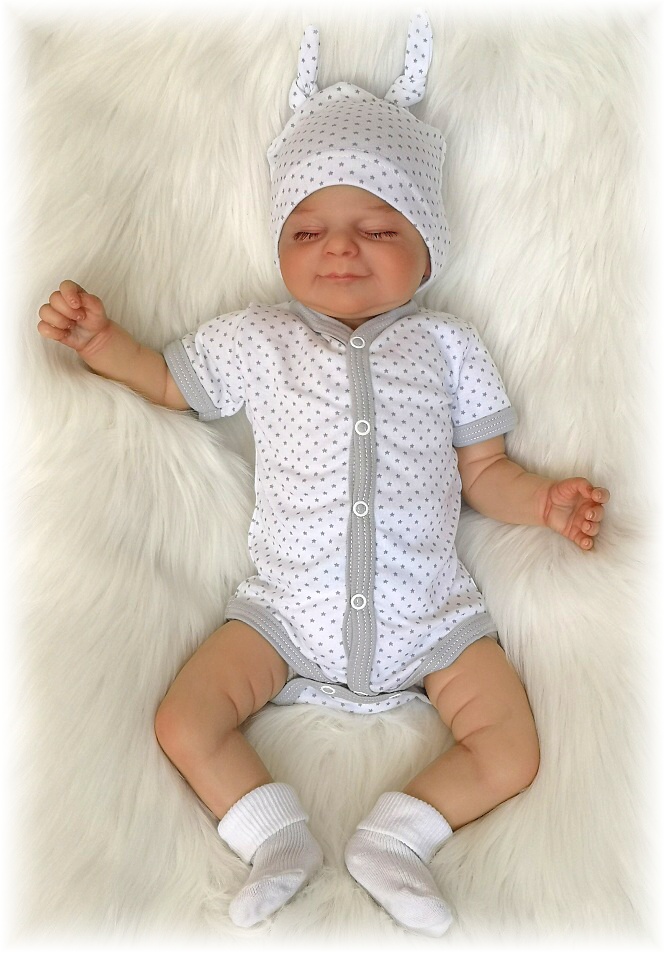 bobynko je vyrobené z příjemné jemné bavlny, zapínání uprostřed na baby druky - usnadňuje pohodlné oblékání i přebalování novorozených miminek - není nutné přetahovat přes hlavičku. Po celém bodyčku na bílém podkladu šedé hvězdičky, šedé lemování.