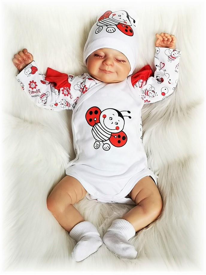 zapínání na baby druky po celé délce na boku i mezi nožičkami,velmi usnadňuje oblékání i přebalování miminka, dvojitá látka na přední části skvěle ochrání citlivé bříško kojence, který se v něm bude cítit velmi příjemně. Sladká beruška na předním díle, rukávky s potiskem, kanýrky, dokonalé body pro vaši malou sladkou berušku.