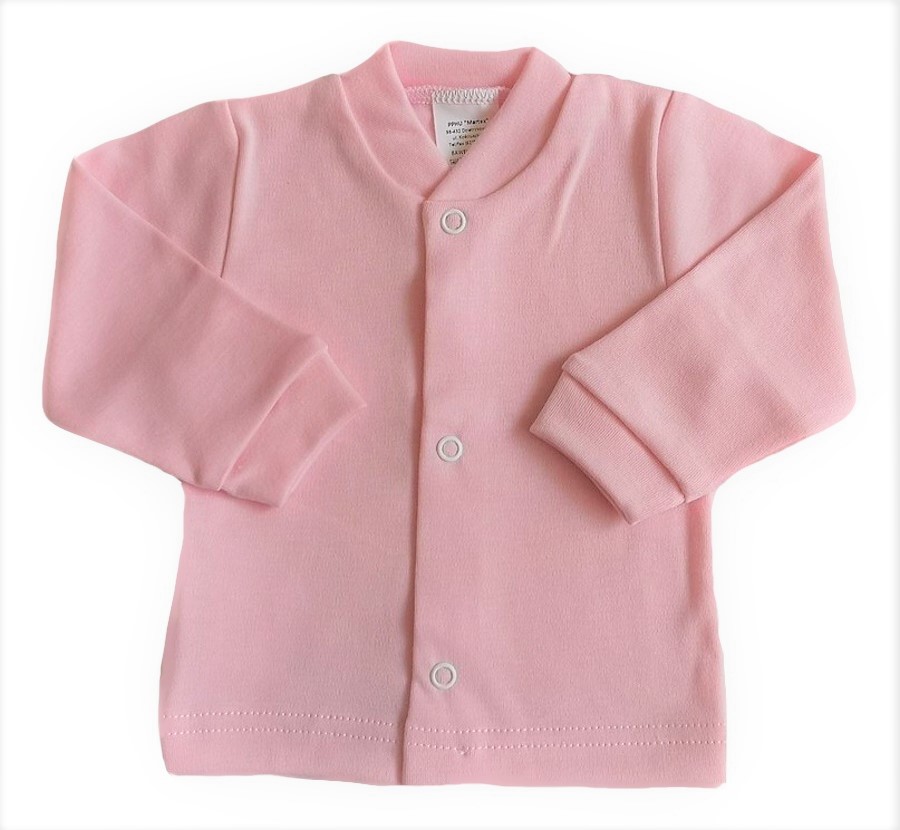 jemná příjemná bavlna v růžové barvě, zapínání kabátku po celé délce uprostřed na baby druky.