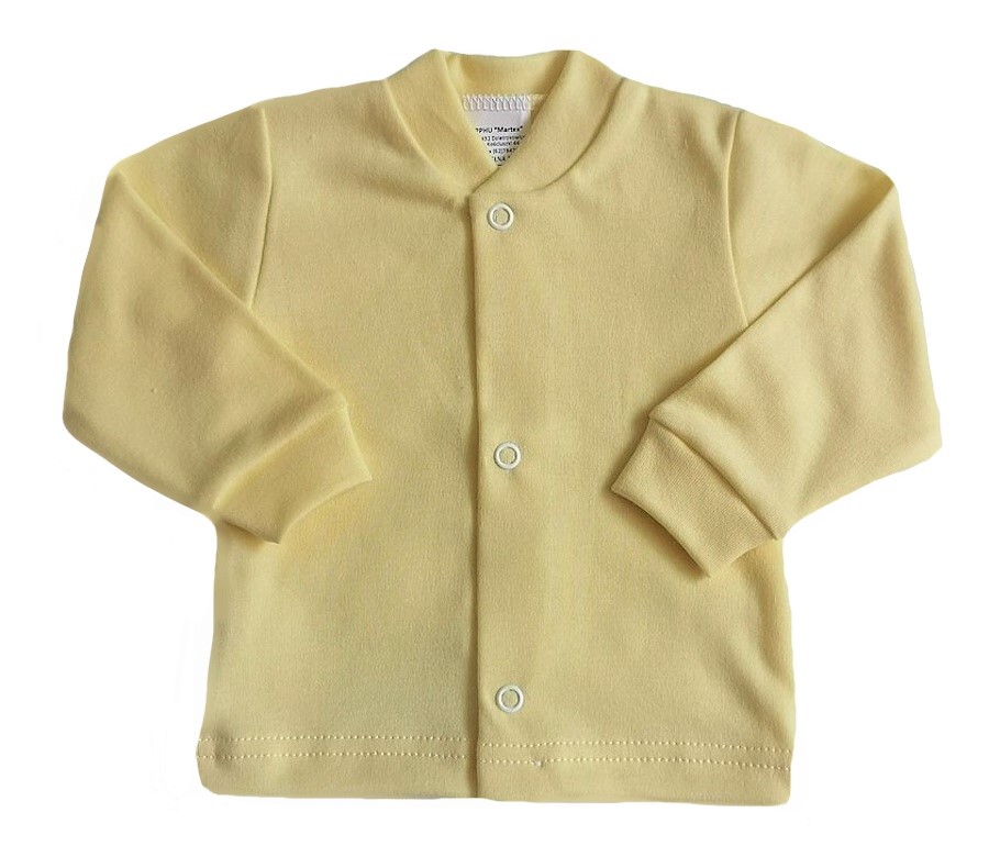 jemná příjemná bavlna v žluté barvě, zapínání kabátku po celé délce uprostřed na baby druky.
