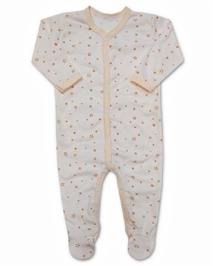 overálek je vyroben z příjemné jemné bavlny na s obrázky hvězdiček, zapínání uprostřed i mezi nožičkami na baby druky - usnadňuje pohodlné oblékání i přebalování novorozených miminek - není nutné přetahovat přes hlavičku.