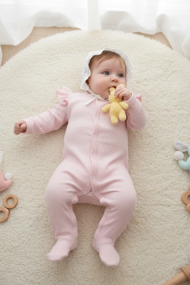 Kojenecký růžový overal Proužek 86