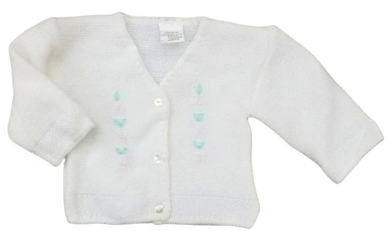 Svetřík pro miminko s výšivkou květinek se zapínáním na knoflíčky.