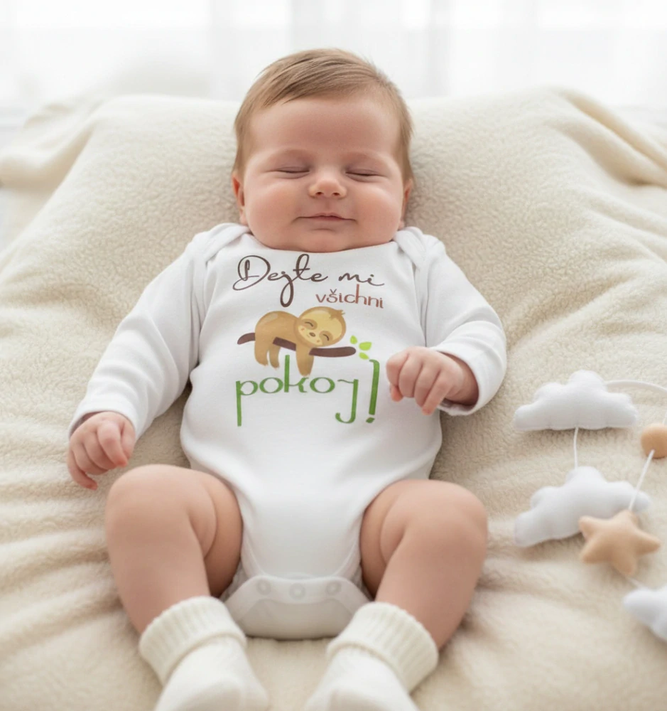 Vaše miminko je to nejúžasnější stvořeníčko na světě, každý si ho chce pochovat, všichni na něj šišlají, pitvoří se :-) Body s českým nápisem DEJTE MI VŠICHNI POKOJ asi někdy mluví za něho.... :-)
