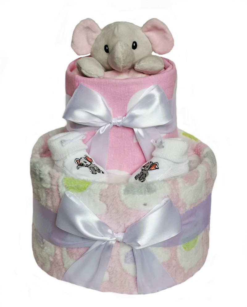 Dvoupatrový plenkový dort pro novorozené miminko Růžové slůně