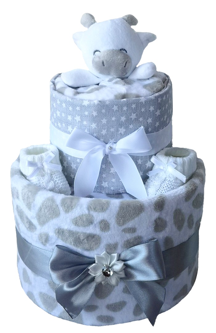 Dvoupatrový plenkový dort pro novorozené miminko Žirafka šedá