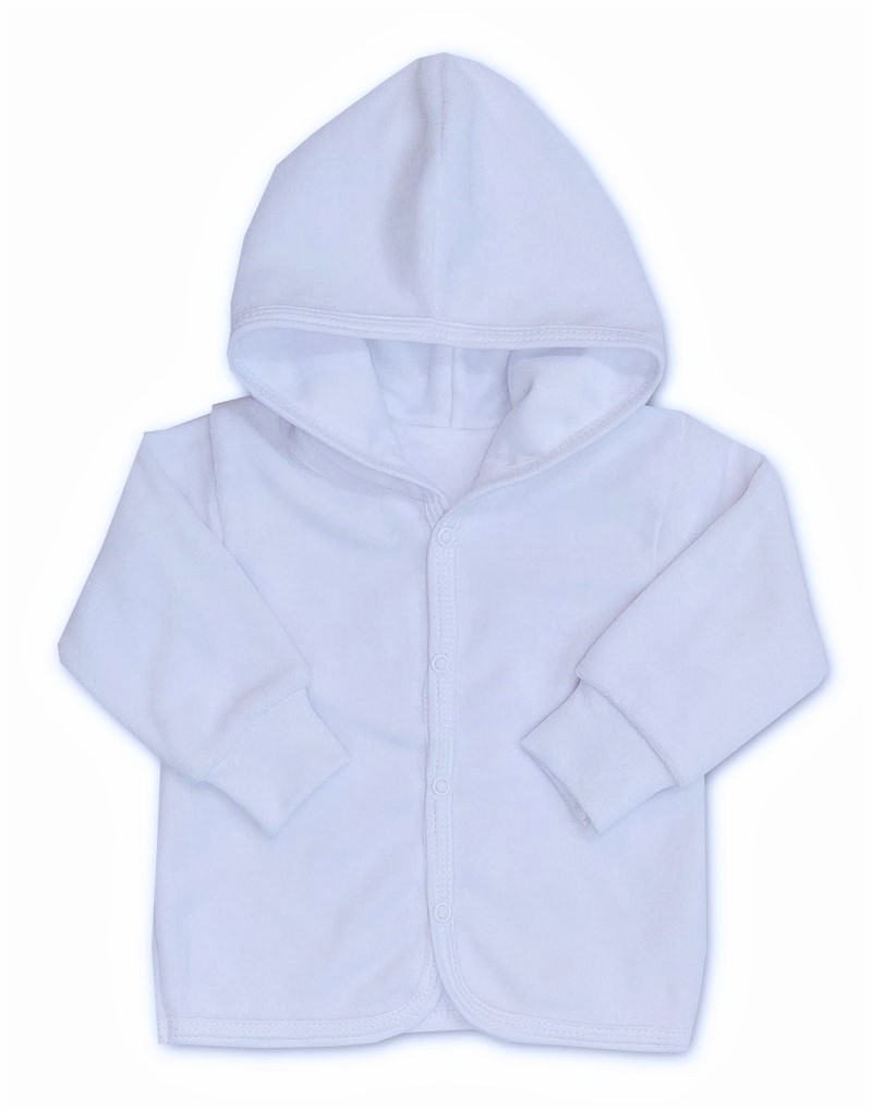 Bílá sametová mikinka pro miminka s bavlněnou podšívkou.