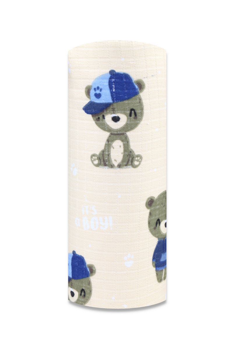 Bavlněná plena s obrázky - Méďa v čepici krém