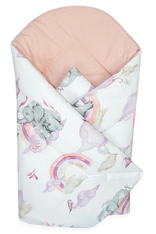 - Bavlněná zavinovačka Slůně s duhou pudr růž