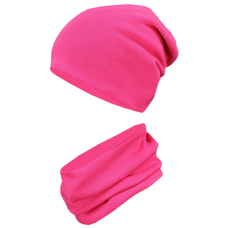 - Dětská bavlněná čepice s nákrčníkem amarant