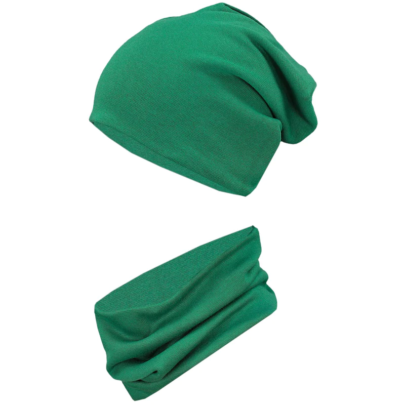 Dětská dvojitá bavlněná čepice a dvojitý nakrčník zelená