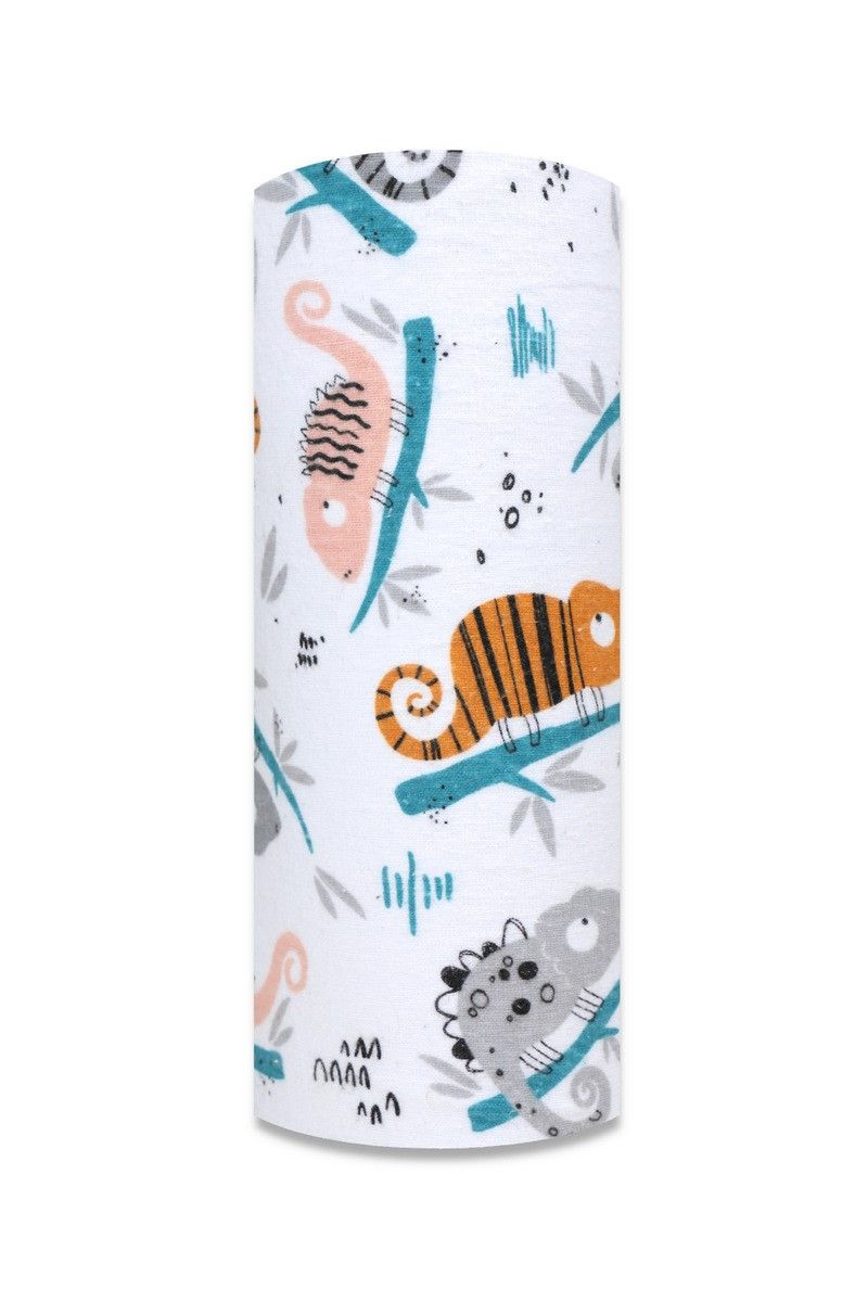 Flanelová dětská plena s obrázky chameleon tyrkys