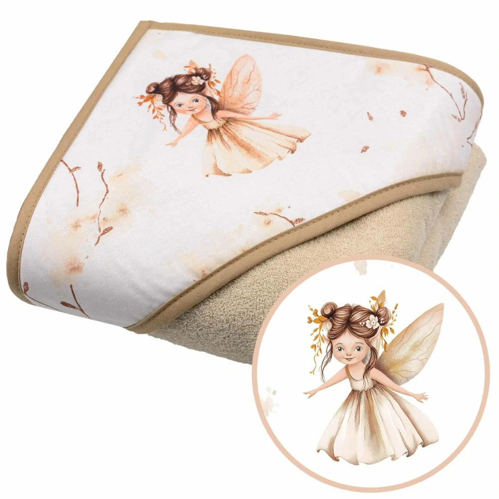 osuška pro miminka má na kapucce - obrázky víl, celá osuška obšitá.